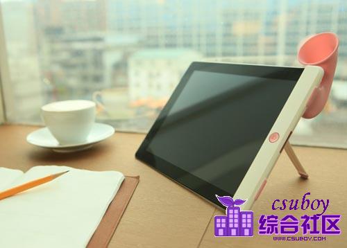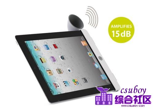 台湾Bone为iPad2 量身打造了一款不插电的号角扬声器,利用号角的原理,将音源集中后,引
