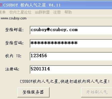 [版区公告]【教程】完全免费获取CSUBOY校内人气之星V9.2.8注册码方法 [复制链接]