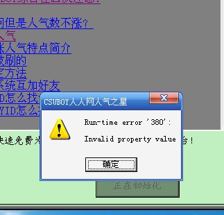 登陆服务器成功,点开始刷人才, 就弹出一个框来, error 380 , 在一点确定就没有了, 这是怎么回事啊