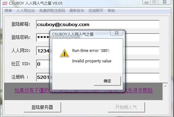 为了获取CSUBOY校内人气之星V8.05注册码 我点击免费获取注册码之后就弹出这个画面~~