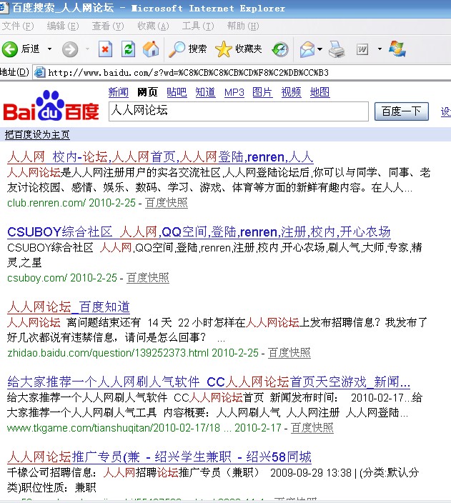 [经验分享]如何快速找到论坛——百度【人人网论坛】即可 [复制链接]