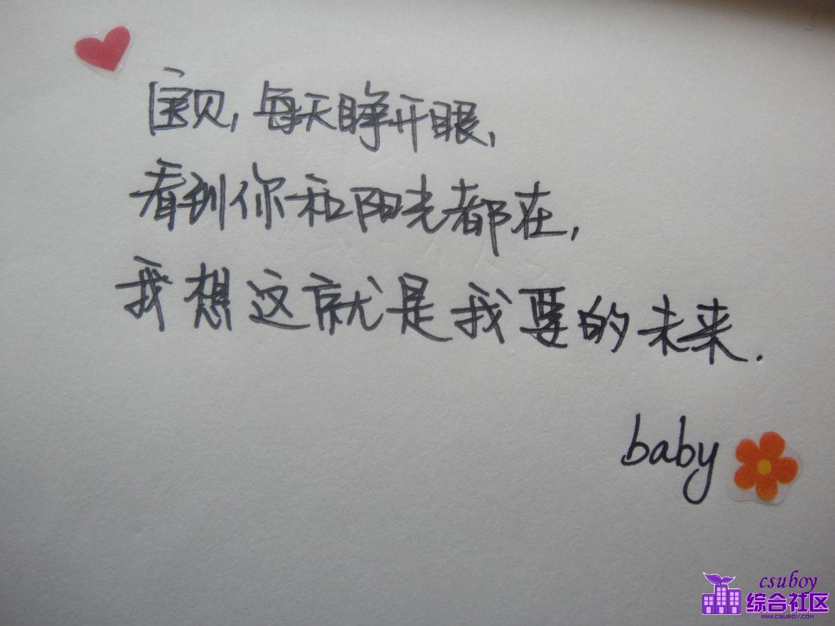 内容:宝贝,每天睁开眼,看到你和阳光都在,我想这就是我要的未来.