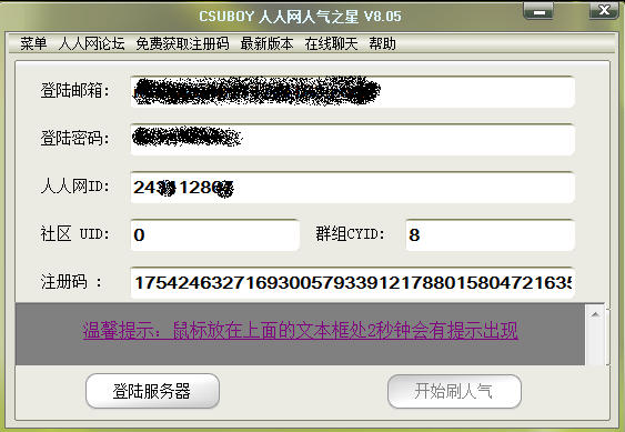 解决方法:大家可以看到社区UID是空的,这样自然是上不去啦。所以,登陆器界面的空全部是要填上去的。大家填写时一定要细心,不然可能会造成虽然登录,但是人气不长。