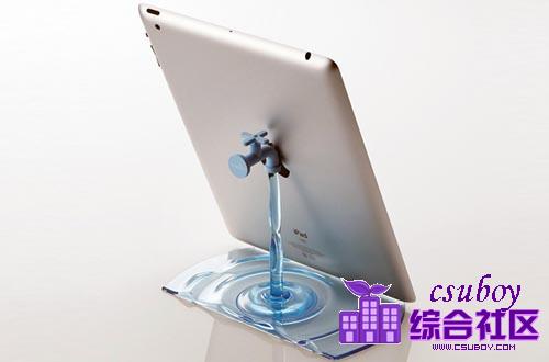 平板电脑设计的支架。这个设计是用聚碳酸酯塑料和ABS水龙头部件制作的,在形式设计上,支